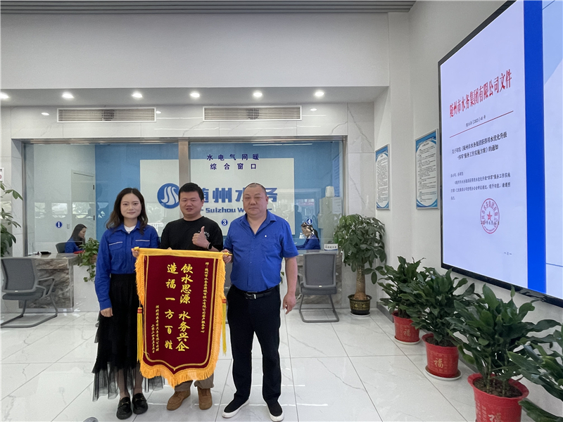 “感謝你們的及時檢測,為我們公司解決了難題?!?月10日,隨州市水務(wù)集團收到了來自湖北同威專用汽車有限公司贈送的一面錦旗。這面錦旗上書:“飲水思源、水務(wù)興企、造福一方百姓”,充分展現(xiàn)了企業(yè)用戶對水務(wù)集團全心全意為民服務(wù)的感激之情。