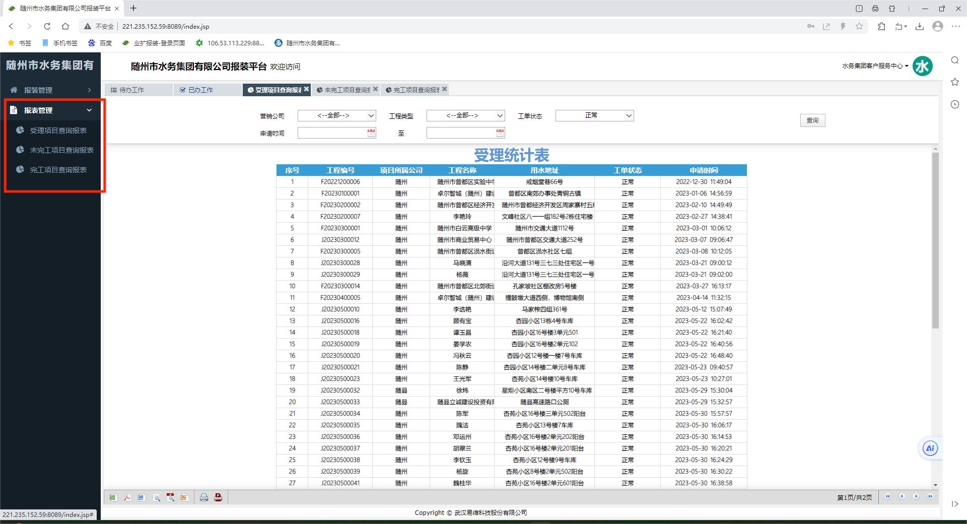 (1)報裝管理系統(tǒng)截圖