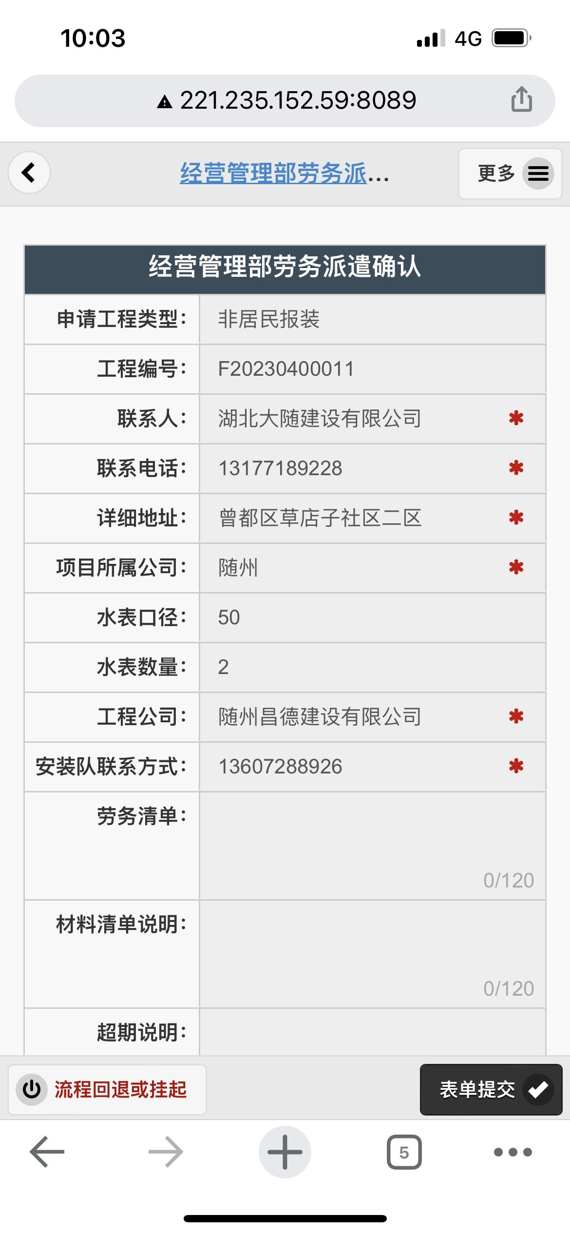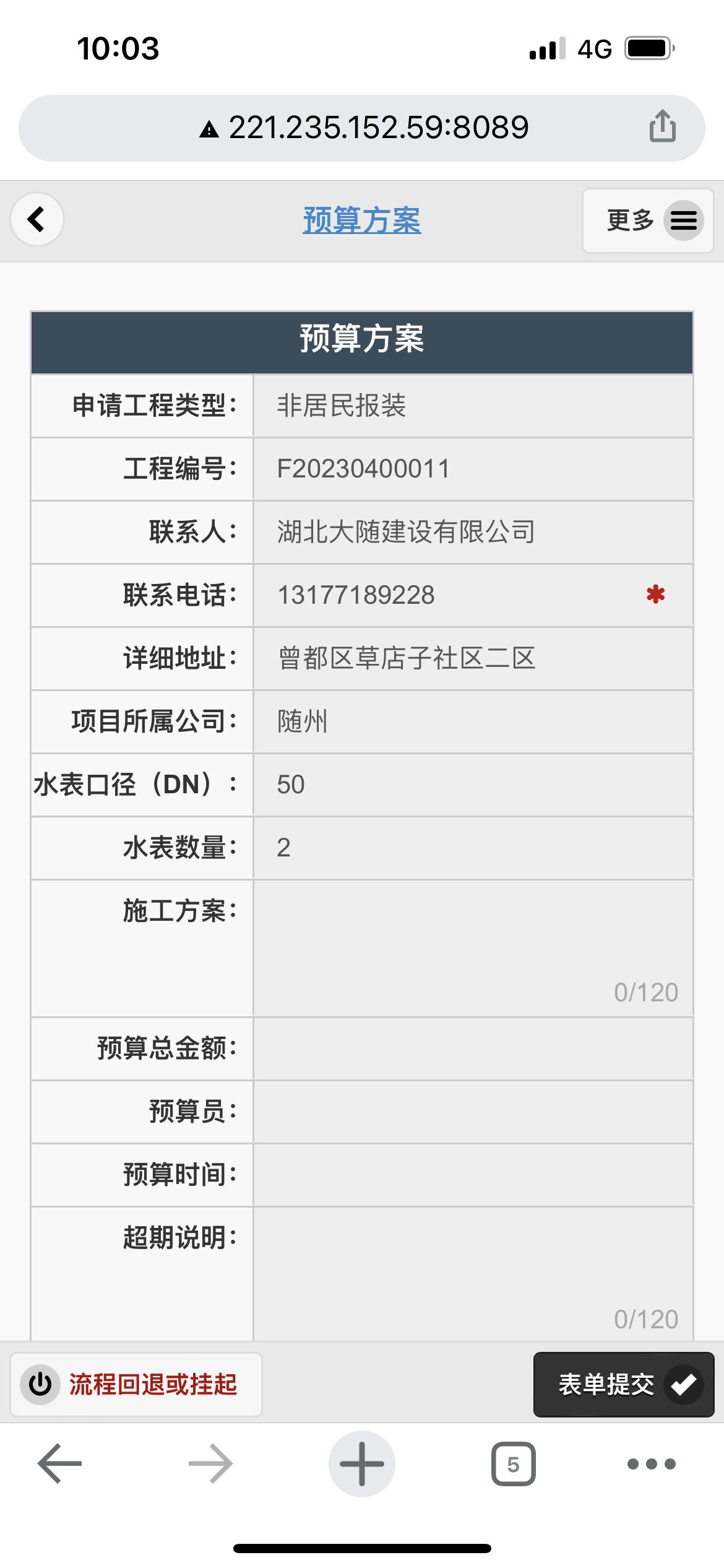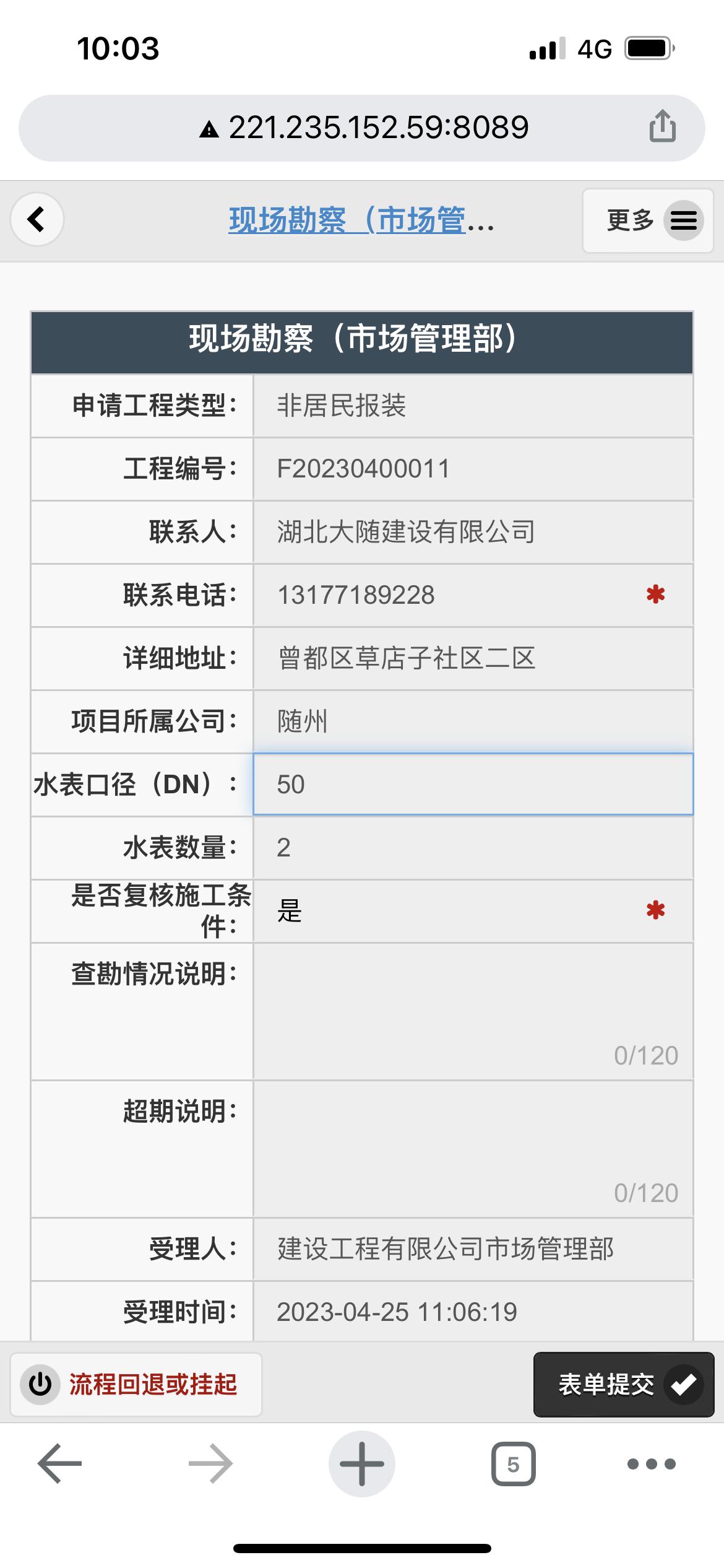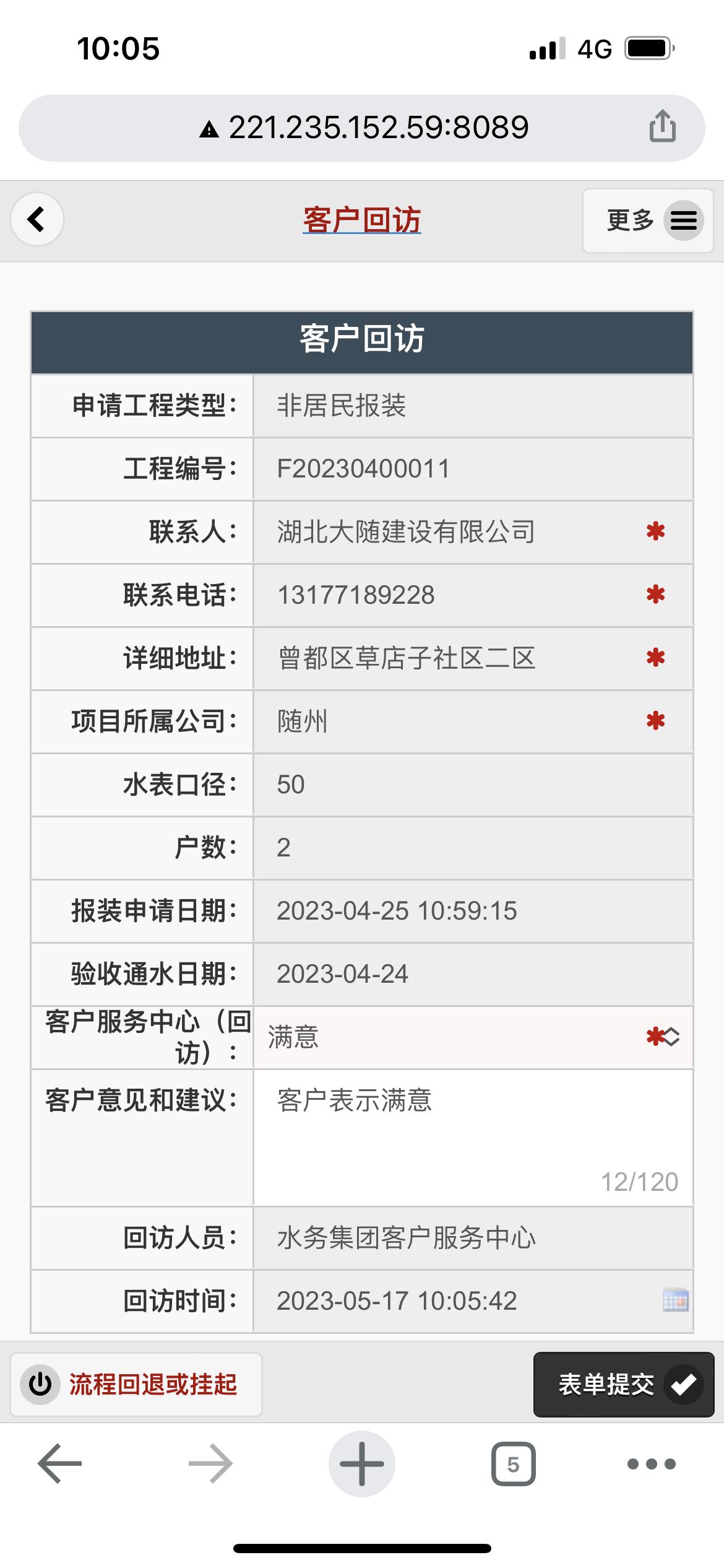 二、應(yīng)用案例及實(shí)際操作界面截圖(包含用水報(bào)裝、現(xiàn)場勘查、預(yù)算方案、工程施工、驗(yàn)收通水、客戶回訪等功能)
