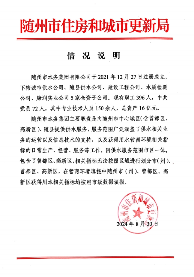 隨州市水務集團基本情況說明