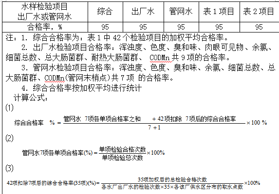 6.8??水質(zhì)檢驗項目合格率要求見表4。