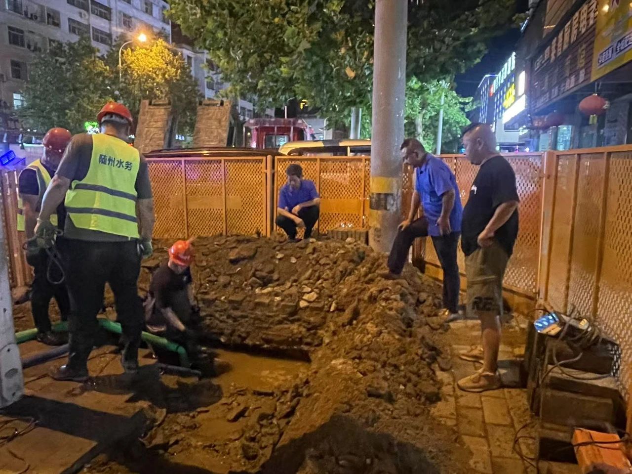 2024年2月4日22時許,隨州市水務(wù)集團24小時供水服務(wù)熱線3318118接到用戶反映稱,季梁大道與交通大道交叉口附近疑似出現(xiàn)管道漏水情況。當(dāng)時隨州正遭遇著一場歷史少見的低溫雨雪冰凍災(zāi)害天氣,通往現(xiàn)場的路面上被凍雨和冰雪覆蓋,車輛難以通行。然而“災(zāi)情就是命令”,面對持續(xù)漏水可能造成更加嚴重的后果,周新和他的“黨員突擊隊”迎寒而上,冒雪“逆行”,克服重重困難抵達現(xiàn)場,連夜展開搶修工作。經(jīng)過現(xiàn)場勘查,終于查找出漏水原因。但在嚴寒天氣下,機械進出困難,給搶修帶來了極大難度。