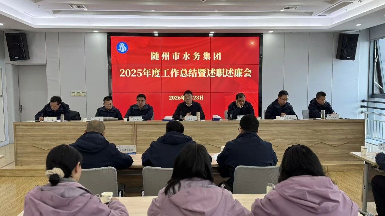 2026年1月23日,隨州市水務(wù)集團(tuán)2025年度工作總結(jié)暨述職述廉會(huì)議隆重召開(kāi)。會(huì)議全面總結(jié)過(guò)往成效、精準(zhǔn)謀劃未來(lái)發(fā)展,凝聚推動(dòng)集團(tuán)高質(zhì)量發(fā)展的強(qiáng)大合力。集團(tuán)黨總支書(shū)記、董事長(zhǎng)桂維國(guó)出席并作重要講話,黨總支副書(shū)記、總經(jīng)理嚴(yán)賢江主持會(huì)議,集團(tuán)領(lǐng)導(dǎo)班子成員、各公司班子成員及全體干部職工參會(huì)。