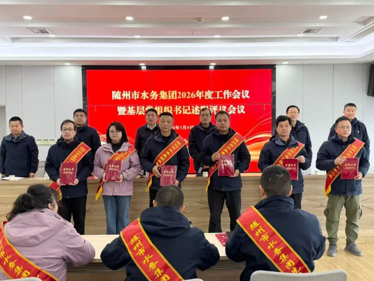 3月2日,隨州水務(wù)集團召開2026年工作會議暨基層黨組織書記述職評議會議。會議深入學(xué)習(xí)貫徹上級精神,全面總結(jié)2025年工作,表彰先進典型,系統(tǒng)部署2026年重點任務(wù),動員全體干部職工實干篤行、奮勇爭先,奮力開創(chuàng)集團高質(zhì)量發(fā)展新局面。集團黨總支書記、董事長桂維國出席會議并講話,集團黨總支副書記、總經(jīng)理嚴賢江主持會議。